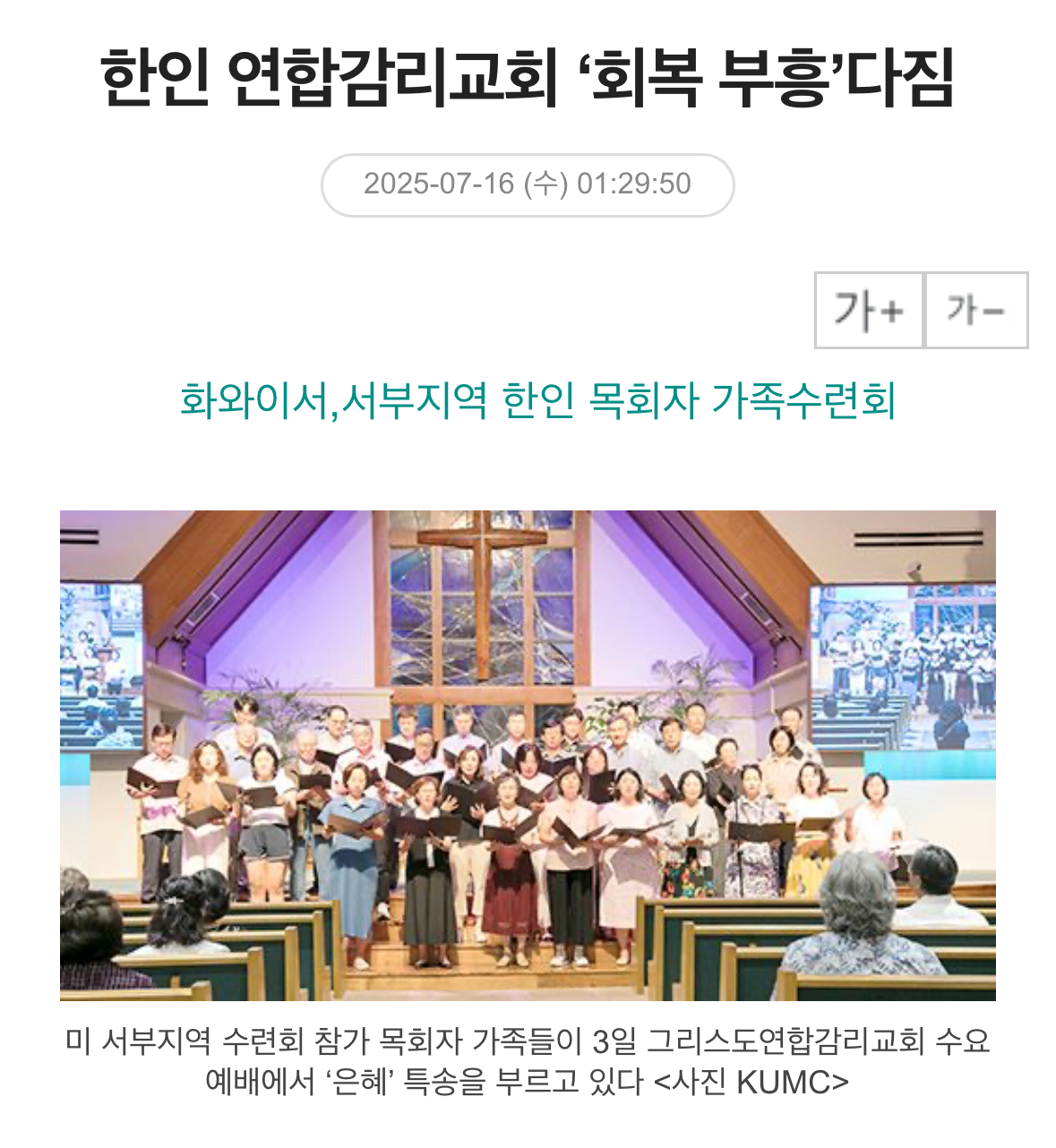 "서부지역 목회자 가족 수양회" 신문기사입니다